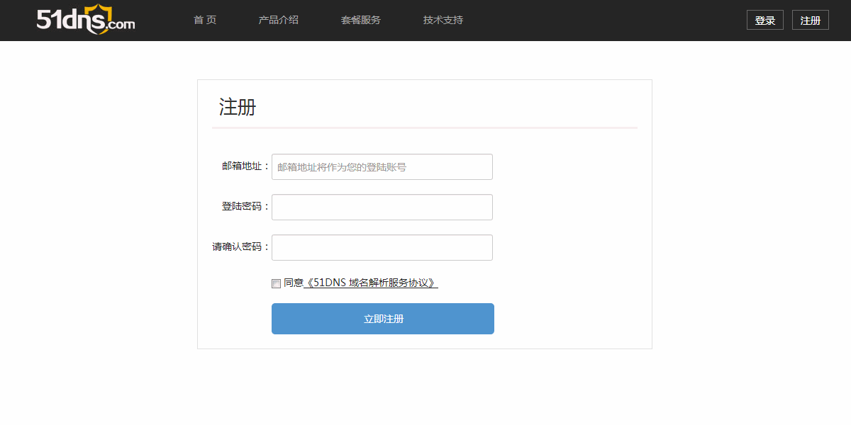 1、 至https://www.51dns.com/member/register 注册用户